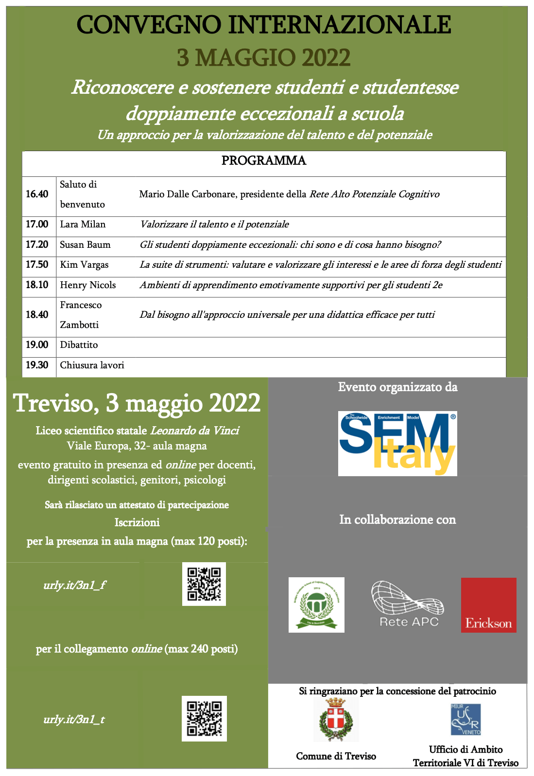 Education, nonchè delle strategie di accelerazione, arricchimento, compattazione e differenziazione del curricolo, con approfondimenti sul Modello SEM. (Renzulli J., Reis S., Milan L. Il Modello di